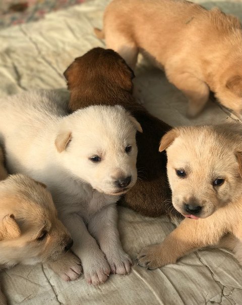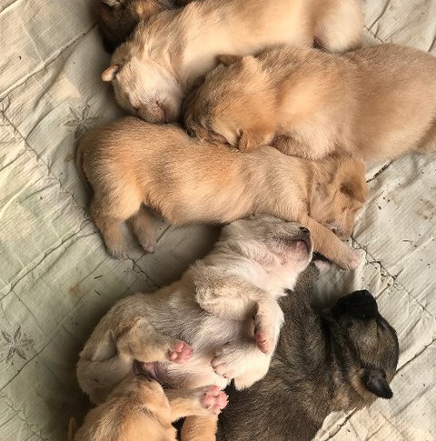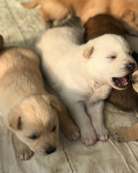 동네를 떠돌던 유기견이 풀숲에 땅을 파고 지난 1월 새끼를 낳았다고 해요~