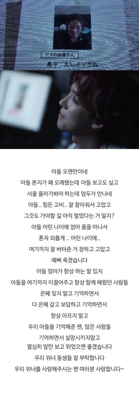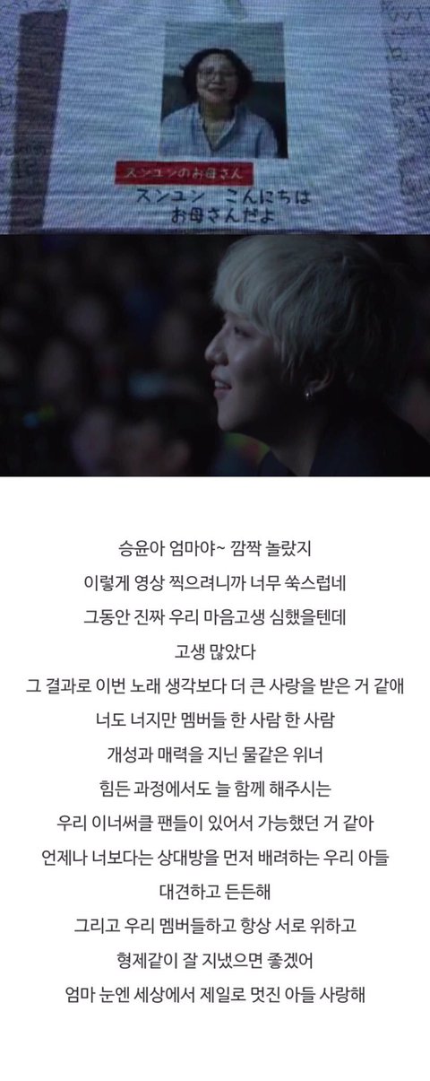 작년 릴리릴리 일본투어때 위너 어머님들이 영상편지 보내신거...ㅠㅠㅠㅠㅠㅠㅠㅠ