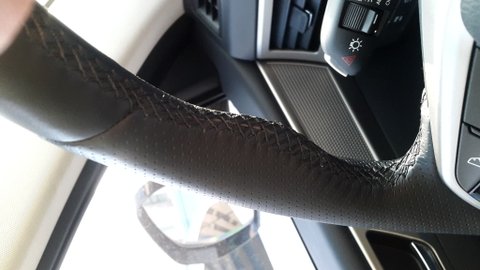 구멍은 있는데 사용 불가네요. 또 핸들 바느질이 약한건지 벌어지네요. 열선 핸들 때문인건지. 천키로도 안됐을 때 찍은 사진인데. 이런 핸들로 만키로, 10만키로 탄다고 하면 가죽이 다 뜯어지겠네요.