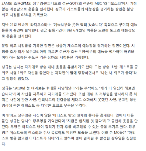 '라스', 최고의 1분은 성규의 '예능감 평가'