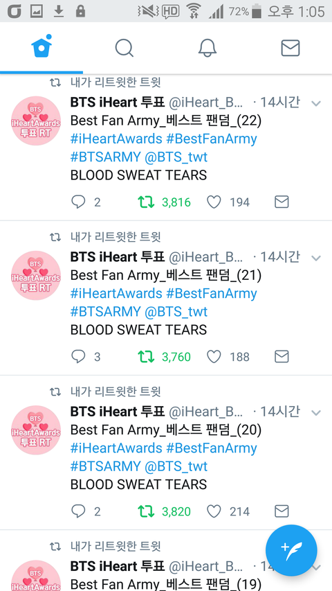 진짜 이해가 안가..가끔 일본아미들 보여서 짹들어 가보면 진짜 심하게 아이하트 해시태그 안쓰더라..