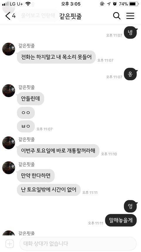 토욜날밖에 시간안되니까 꼭 말해달라고 전화도하고 카톡도함.