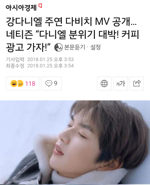 뮤비 기사가 이렇게도 나고 ㅋㅋㅋㅋ 웅 강다니엘 커피광고 ㅅㅊㅅㅊ