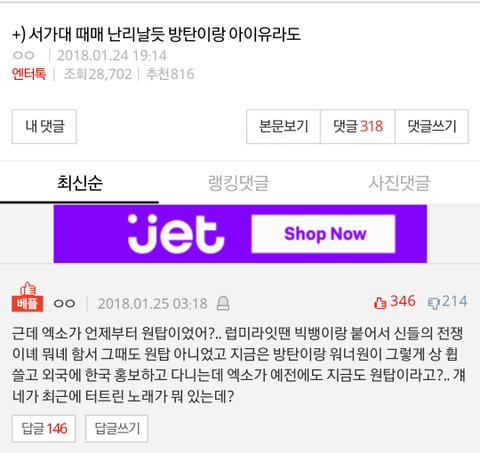 글에는 엑소언급 없는데 엑소랑 비교질하면서 자기오빠 언니 대단해! 하는 클라스 오지고
