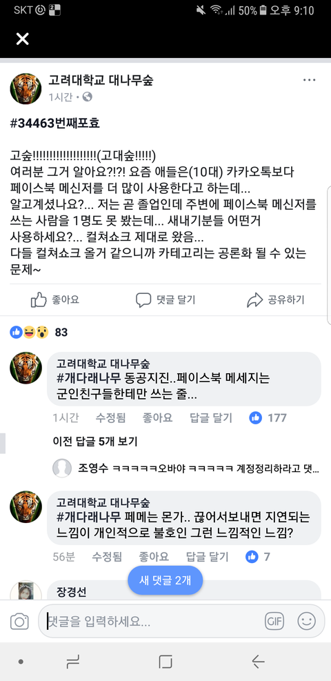 난 페메싫음..현활 뜨면 너 왜 페메 안보냐고 개지랄ㅇㅅㅇ..아니 급한것도 아니고 쓸데없는 말만 할거면서 내가 왜 거기에 시간투자해야하는지도 모르겠고 ㄹㅇ 카톡이 더 나음