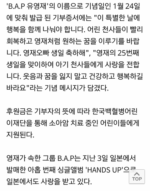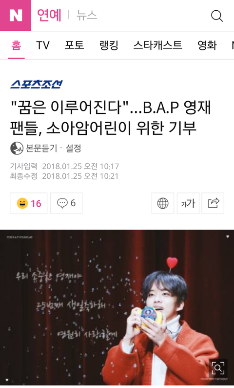 초록창에 울 베이비들이 영재생일기념 기부한 내용의 기사가 있길래 퍼왔어. 댓달고오자.
