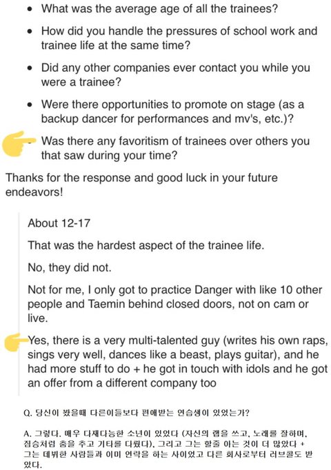슴 전 연습생의 에스크 답변중에 편애받았다는 연습생 누구냐는 말이 많았는데