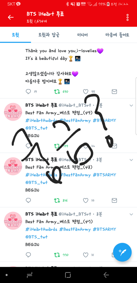나 팬톡 많이는 안들어오는데 하루에 한번 흐름 읽어가는 정도라...