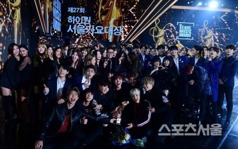 2015였나 런 끝나고 한 서ㄱr대때만해도 뒤에서 주황머리랑 민트머리가 점프하면서 사진 찍었었는데 어느새 이렇게 훌쩍커서 대상받고 센터 딱 차지하고ㅠㅠㅠ 진짜 너무 대단하고 뿌듯하고 고맙고 울컥하고 그렇다ㅠㅠ