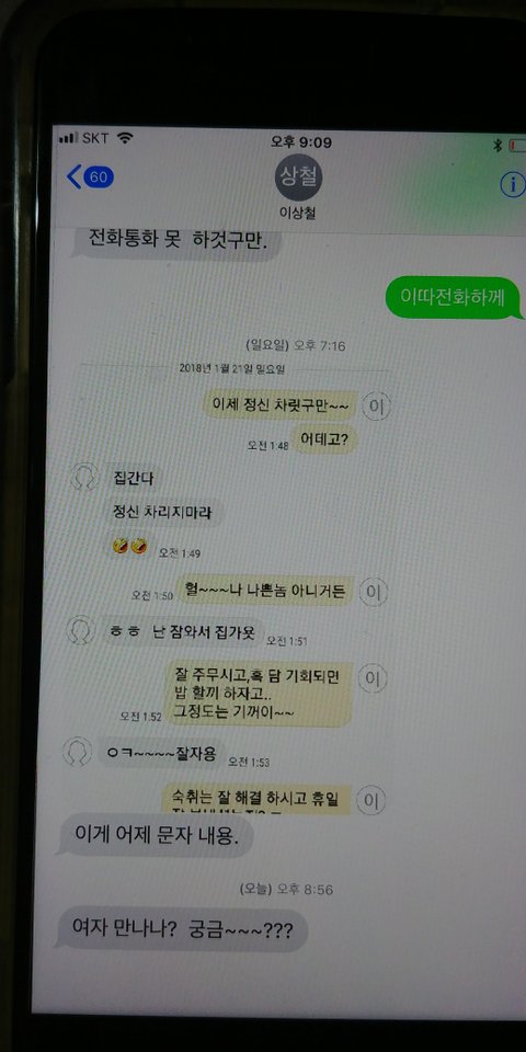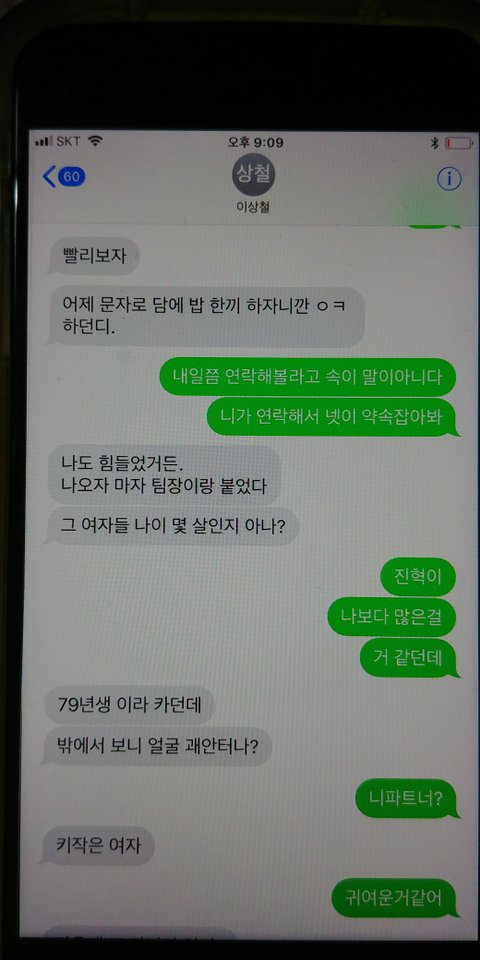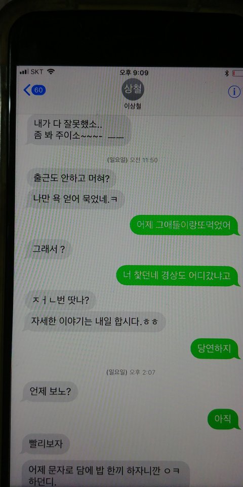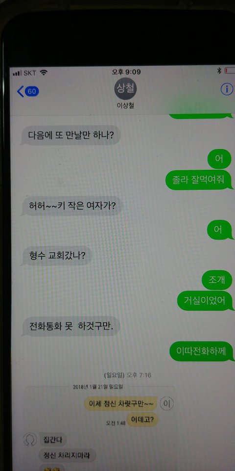 황당해서 메세지함 열어보니 그동안 그 동생이라 주고 받은 문자가 있더라구요.