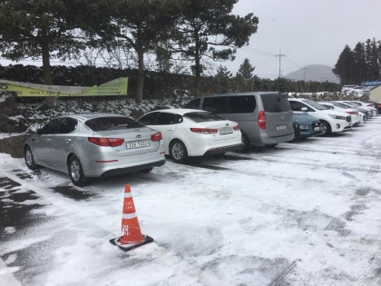 눈이 쌓이는 상황에서 눈발이 막 날리고 위에 주차 하는곳 한 바퀴 돌고 차 댈데가 없길래 내려와서 버스라인 바로 옆에 자리가 나서 주차를 했어요 그리고 올라갈땐 주차요원이 없었는데 눈이 막 쏟아지고 춥기도하고 다음일정하고 애들이 어려서 빨리 둘러보고 나오자하고