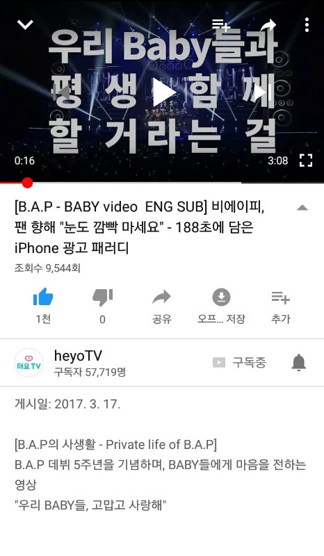 비에이피랑 팬들끼리만 축하해 해서 조금 속상 했었는데 어느날 5주년 축하 영상을 해ㅇㅌㅂ 에서 만들어주셔서 너무 감사하게 봤던 기억이 나네 갑자기 생각나서 다시 봤는데 다시 너무 감사한 기분도 들고 벌써 6주년이라는게 실감도 안나더라 비에이피 베이비 앞으로도 행복하자ㅠㅠㅠ!