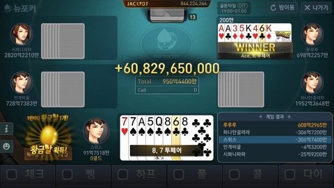 뉴포커라 총 8장의 카드로 포커를 치는 게임 이기 때문에 2장중에 한장은 나올 줄 알았습니다.