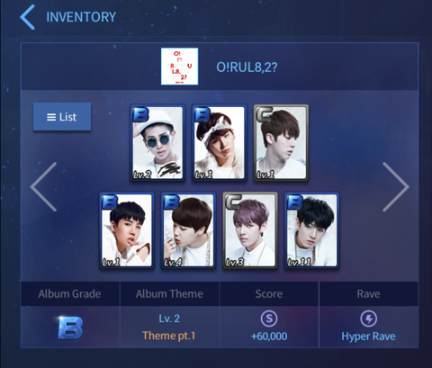 테마2는 슈가, 호석 2개야 밑에보면 알겠지만 테마점수 60,000 먹고 시작하거든 근데 내가 카드를 받았는데