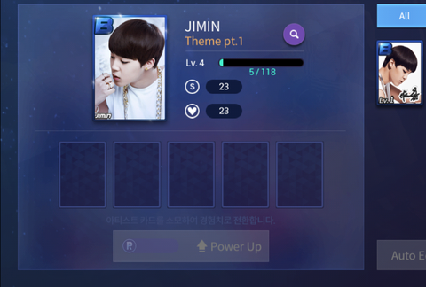 오른쪽 지민이 싸인카드를 받았어 같은 B등급인데 원래 하얀건 레벨4이고 황색은 싸인카드인데 테마2야ㅠ
