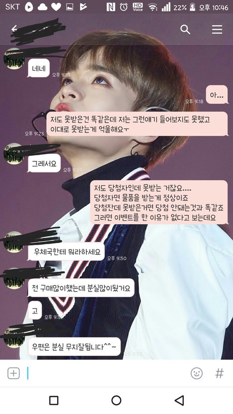 "그러면 당첨된 이유가 없잖아요.당첨자는 물품 받는게 정상이죠 당첨잔데 못받으면 이벵을 한 이유가 없다고 보는데요"