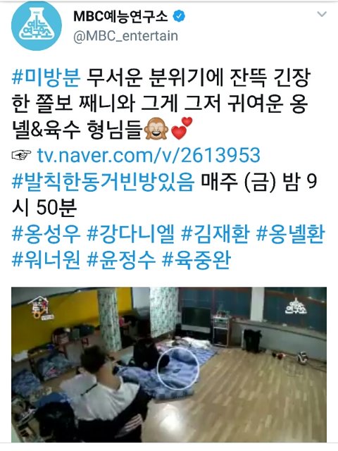 https://twitter.com/MBC_entertain/status/956894691395485697 발칙한동거빈방있음 미방분 하트+리튓+타래에 짤털 해주세오