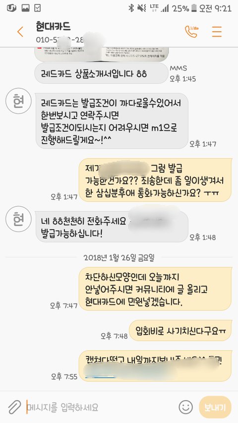 현대카드 연회비사기꾼 전*철 010577*285*