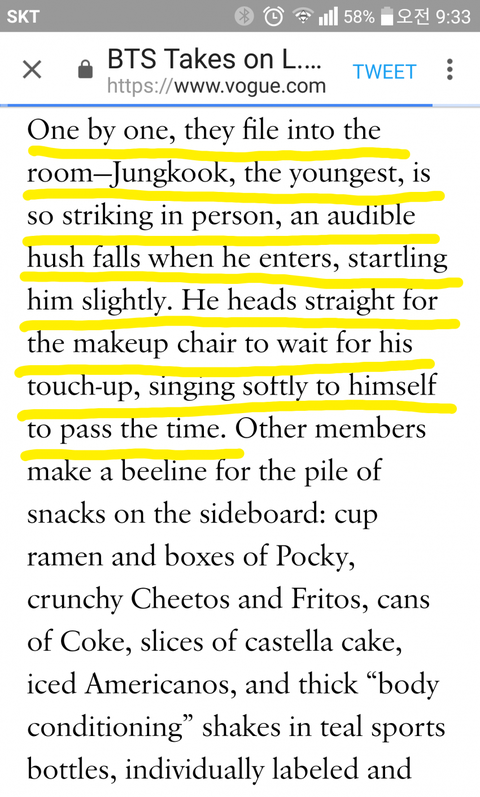 <Vogue의 방탄소년단 기사 중 일부 발췌>