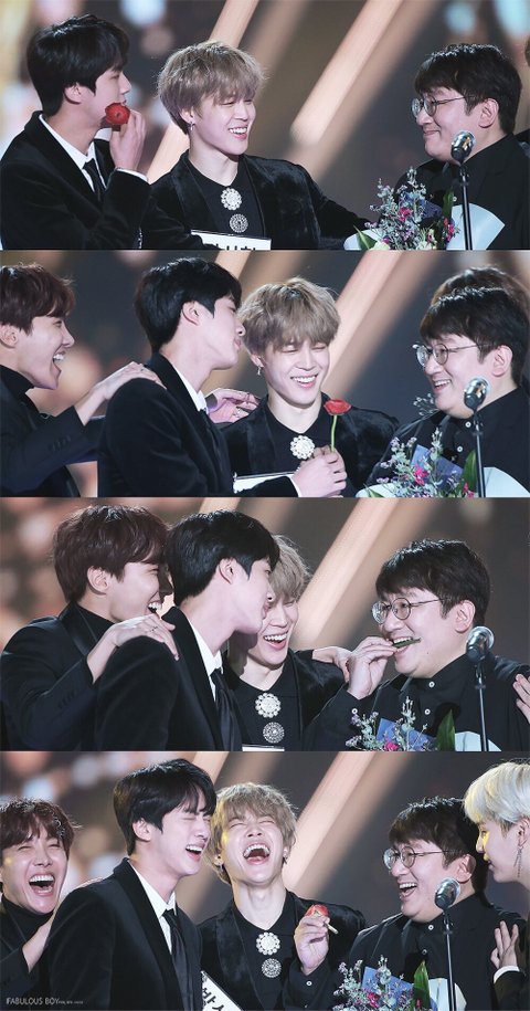 사람들보는 앞에서 가수랑 사장이랑 가식적인 것 하나 안보이고 이렇게 장난치는거 보고 완전 놀랐다.