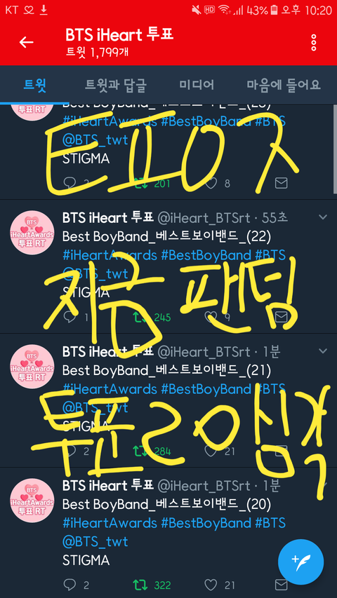 일단 지금 아이하트 팬덤 ㄹㅇㄹㅇㄹㅇㄹㅇ역전위기니까 제발 여기오지말고 짹이든 인별이든 가서 투표해ㅠㅠㅠ!!!!