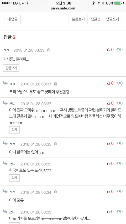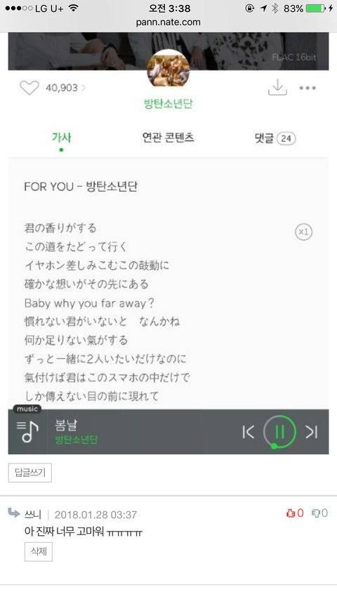 나는 사실 엑소엘인데 유튜브에서 그냥 우연히 보게됐다가 너무 노래 좋아서 물어볼 곳이 여기밖에 없더라구ㅠㅠㅠㅠ 아미들 알려줘서 너무 고마워 !!! 그리고 노래도 너무좋아ㅠㅠㅠㅠㅠ 지금도 너무 좋아서 흥얼거리고 있다 ㅎㅎ 우리 팬덤끼리 사이 별로 좋은편은 아닌데 여기 와서 너무 미안해ㅠㅠㅠㅠㅠ 기분 나쁘다면 내가 사과할게 ㅠㅠ 혹시 방탄 노래중에 저런분위기의 발라드 추천할거 있으면 추천 좀 하고 가줘ㅎㅎ 참고로 나 영포에버랑 리플렉션 진짜 좋아해!!