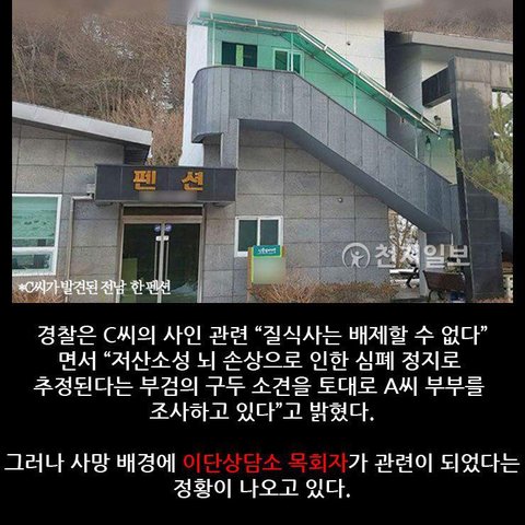 지난 1월 전남 화순펜션에서 사망사건이 일어났습니다. 헌데 언론사에서 제대로된 사건이 아닌 그저 조회수 높이기 위한,종교문제로만 강조하면서 대중들의 마음을 선동하는 사실에 더 울분이 터집니다.