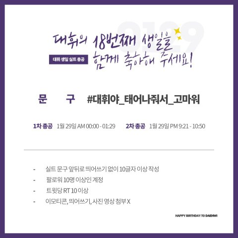 오늘 대휘 생일실트 문구!