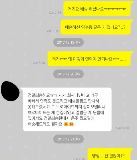우선 포스터 오는 거 보고 이상 없으면 가만히 있겠지만 포스터마저 미뤄지거나 하자 있으면 그 땐 정말 고소할 생각이야
