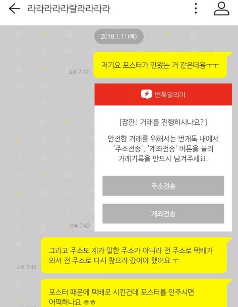 저사람이 포스터 보내려면 택배비까지 햐야된대서 택배비해서 몇천원 더 입금함