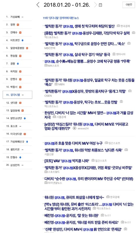 1월 4째주 비이버 주간검색어 11위 강다니엘