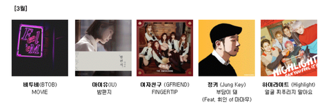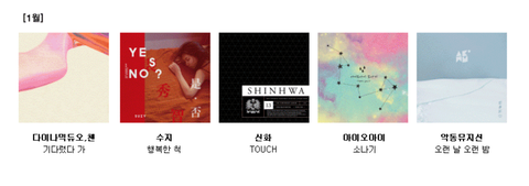 1회 가온시상식 음원 월별 후보