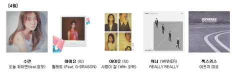 개인적으로 4월달 후보들 진짜 대박인거 같아ㄷㄷ완전 빡세ㄷㄷ 아이유 팔레트,사랑이 잘, 위너 릴리릴리,수란 오취,젝키까지...
