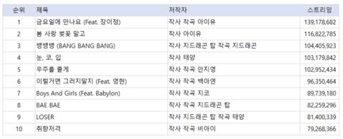 아이유 음원은 넘사지...