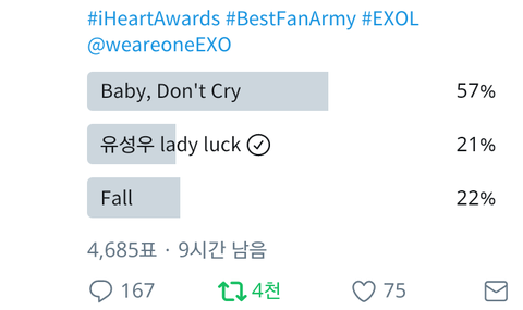 지금 엑1행1연 짹에서 엑소노래 투표하고 있는데