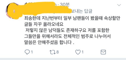 전체범주에 소수의 남덕들마저 휘말려 까이는게 기분나빠서