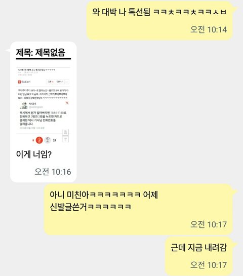 첫번째 톡선이다 꺄아 기분좋아ㅠㅠㅠㅠㅠㅠ