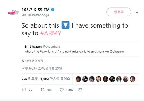 shazam(해외 음악 제공 앱 임)에서 보고 싶다는 트윗을 올리자