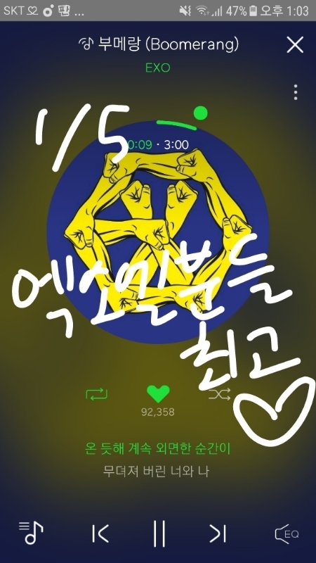 엑소엘분들 감사드려요 그리고 에에에 ~ 가아니라 헤이헤이헤이 였네요ㅋㅋㅋㅋㅋㅋㅋㅋ 아무쪼록 정말 감사드리고 엑소 화이팅 엑소엘 화이팅 항상 응원해요 ❤