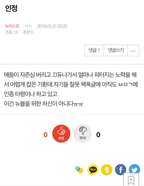 아랫글 ‘인정’ ㅁㄱ (ㅋㅊ 유)