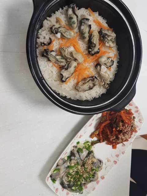 굴밥입니다~~ 생채랑 생굴 ~~둘다 굴을 너무너무좋아해요~~~