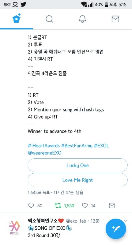 타이틀중에 제일 좋아하능곡이 럭키원이랑 럽란데