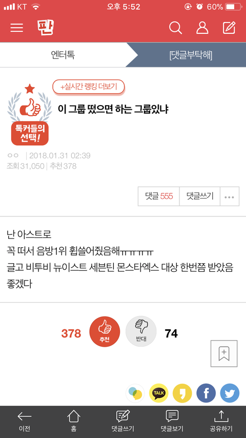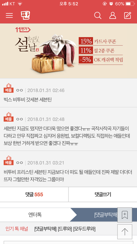 지금 팬톡분위기에 갑자기 얘기하는거 같긴하지만 .,, 우리 같이 이번 컴백 힘내자!!