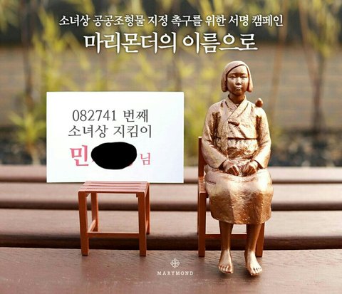 우리나라 전국에 총 99개의 소녀상이 있는데 그중 12개만 공공조형물로 지정이 되었대 공공조형물이 뭐냐면 공공장소에 설치하는 조형물로 지방자치단체가 지속적으로 관리할 의무가 있고 함부로 철거하거나 이전할 수 없도록 되어있는 게 공공조형물이야 그런데 99개 중 87개나 공공조형물로 지정을 받지 못한 상태야 그래서 안타까운 마음에 이 글을 쓰게 됐어 서론이 많이 길었지? 본론을 말하자면 지금 ㅁㅏ리몬드에서 더 많은 소녀상을 공공조형물로 지정될 수 있게 하기 위해 서명 릴레이를 진행하는 중이야 간단하게 이름, 거주 지역, 이메일만 입력하면 되는 서명이니 시간이 남는 이삐는 꼭 참여해줘 그리고 주변에 많이 알려줘!