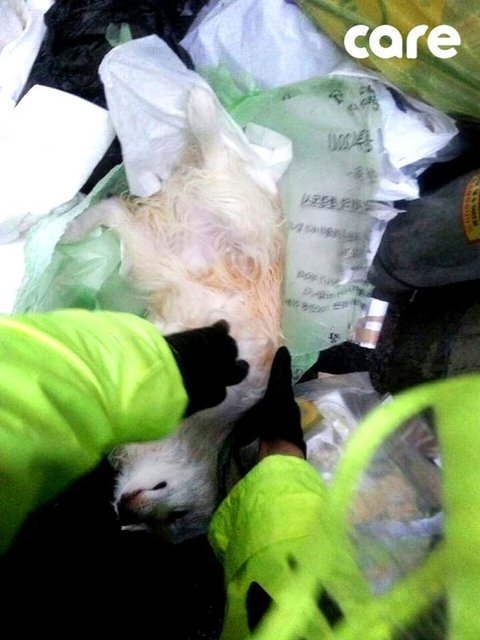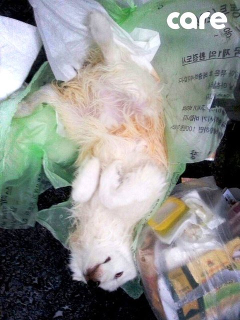 살아있는 반려견을 쓰레기봉투에 버린 남자