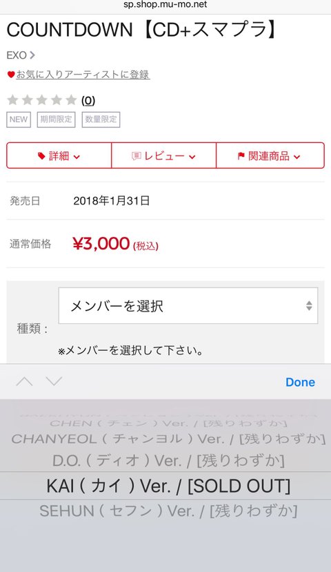 카운트다운 앨범 카이가 어제 품절 뜨고 찬열도 몇시간 전에 품절 떴다고 그러네