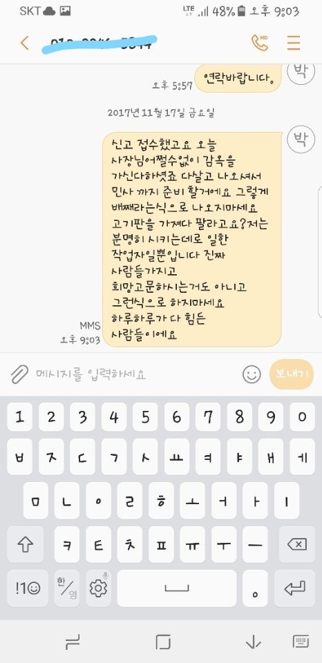 대기업은 매일 24시간 재판하고 바쁜가봅니다 매일하는말은 기다려보라 재판중이다 ㅋㅋ.. 문자하나 건설분쟁위원회 접수 해놨다 우린 돈을 다줄 의무가없다? 아니 그러면 그공사는 저희가 직접가서 자원무료봉사한겁니까? 그 40미터 줄하나매달려서 잠한숨 잘못자가면서? 아 진짜 화가납니다