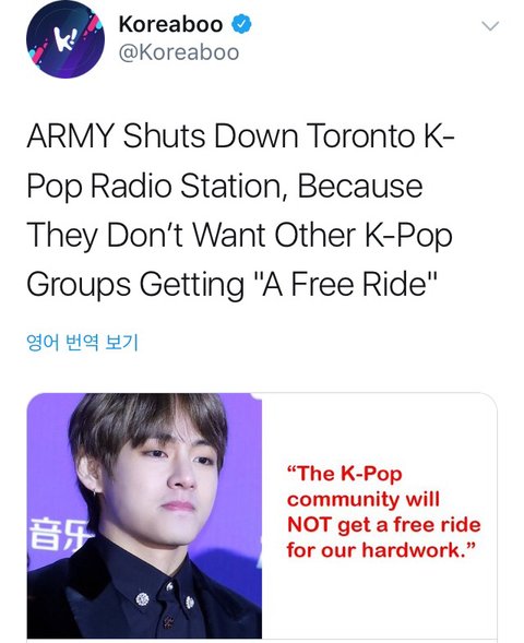 ㅋㅋㅋㅋㅋㅋㅋㅋㅋ캐나다? 에서 방탄팬들하도 난리니까 이제 케이팝음악 절대 안틀어줄거라고 통보했네;;