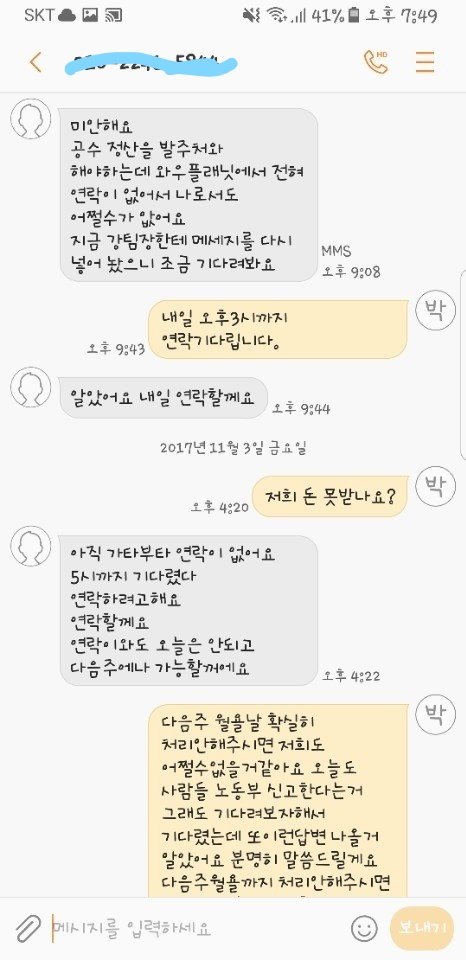 지겹고 매일 스트레스를 받으며 살고있습니다 아니 왜 일을했는데 돈을 못받나요? 진짜 이게 대한민국 건설 근로자들 현실인거 같아서 정말 화나고 열받습니다 진짜 최소한의 임금도 못받고 아직까지도 정확한 답도 듣지못하고 돈 한푼 받지 못하고있습니다 제발 도와주세요 여러분 이번사건계기로 노동자들을 위한 법은 바뀌어야한다고 저는 생각합니다.