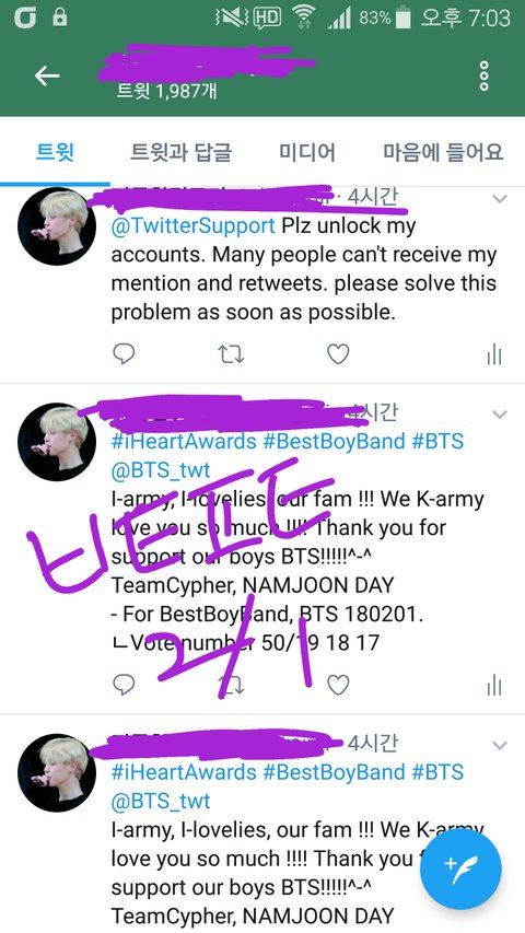 죄다 아미랑 친구하고 싶은 분RT이런거 잔뜩 올리고 놀고 태그아무도 안써